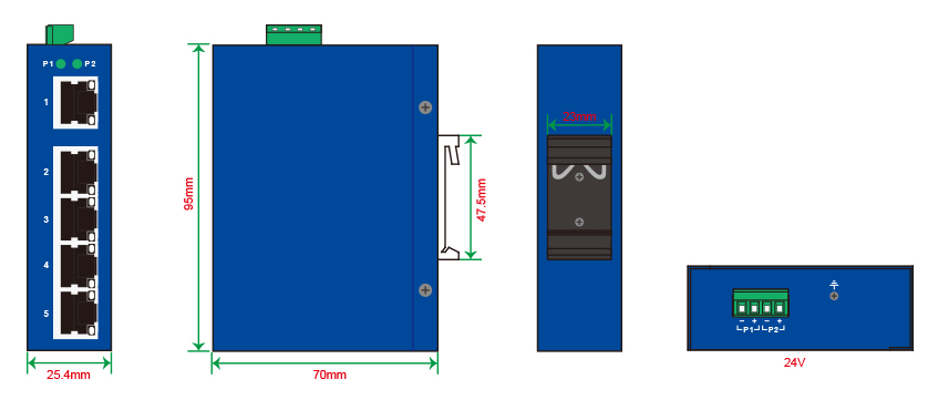 MX5GE-5GT是一款緊湊型全千非網(wǎng)管工業(yè)以太網(wǎng)交換機(jī),支持5個千兆電口。支持IEEE802.3/802.3u/802.3x/802.3ab/802.3z,10/100/1000M,全/半雙工,MDI/MDI-X自適應(yīng)RJ45端口。導(dǎo)軌安裝,24V電壓輸入,并提供過載和反接保護(hù)??蛇x寬溫型號(-40 ~ +75℃),強(qiáng)抗電磁干擾能力,完全滿足苛刻的工業(yè)應(yīng)用環(huán)境,為工業(yè)現(xiàn)場提供經(jīng)濟(jì)可靠的網(wǎng)絡(luò)接入。